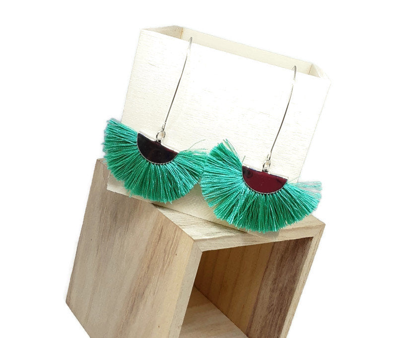Green Fan shaped earrings